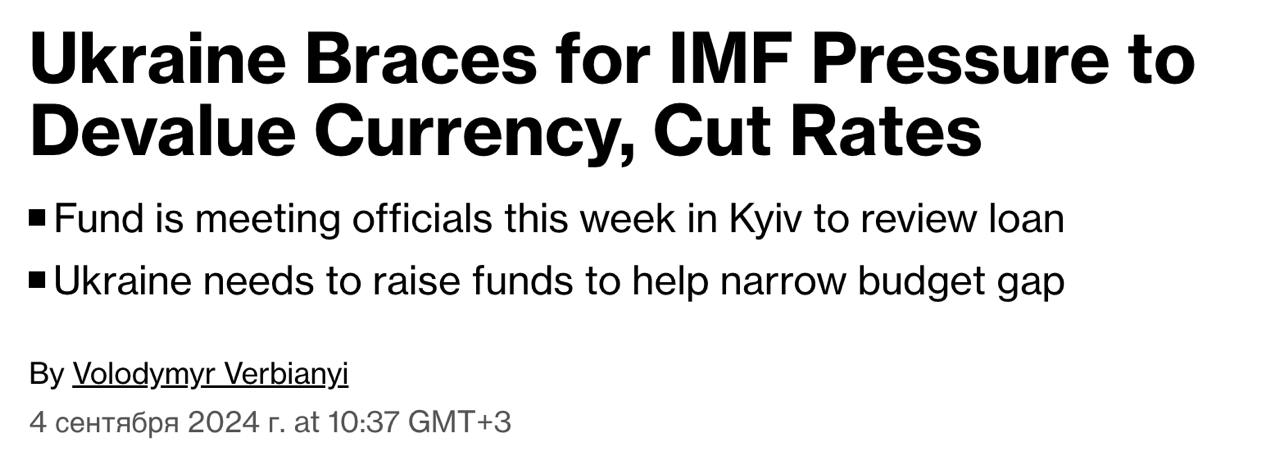 Влада України очікує, що МВФ "підштовхне" їх до зниження курсу гривні, відсоткових ставок та збільшення податків - Bloomberg