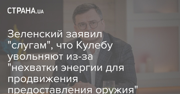 Президент України Володимир Зеленський заявив, що главу МЗС Дмитра Кулебу звільняють, бо йому "бракує енергії для просування надання зброї".
