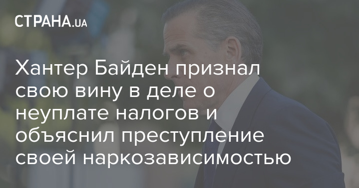 Синові президента США Хантеру Байдену загрожує ув'язнення. Він визнав провину за всіма пунктами звинувачення у справі про несплату податків на 1,4 мільйона доларів і пояснив свою провину залежністю від наркотиків.