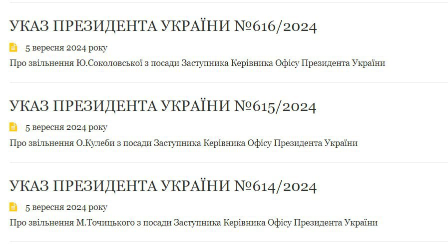 Володимир Зеленський звільнив трьох заступників глави Офісу президента Андрія Єрмака.