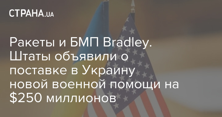 Ракети та БМП Bradley. Штати оголосили про постачання в Україну нової військової допомоги на $250 мільйонів