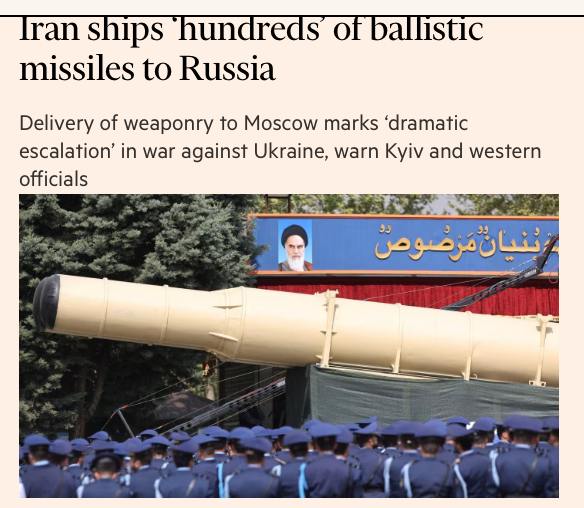 За останньою інформацією британської газети Тimes, у РФ вже поставлено понад 200 іранських ракет дальністю до 120 кілометрів. Вантаж був доставлений кораблем через Каспійське море.