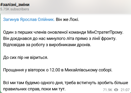 28-річний Олійник займався на фронті дронами, тим самим напрямом займався і в міністерстві.