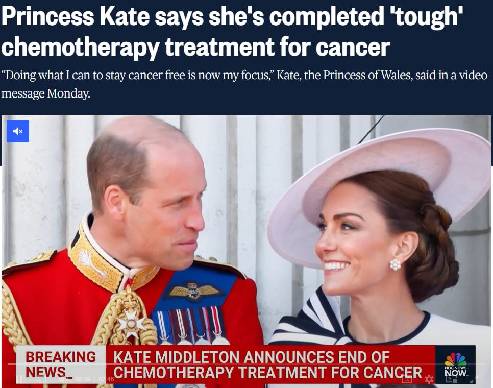 Дружина спадкоємця британського престолу, принцеса Уельська Кейт Міддлтон, у якої раніше виявили рак, повідомила про завершення курсу хіміотерапії.