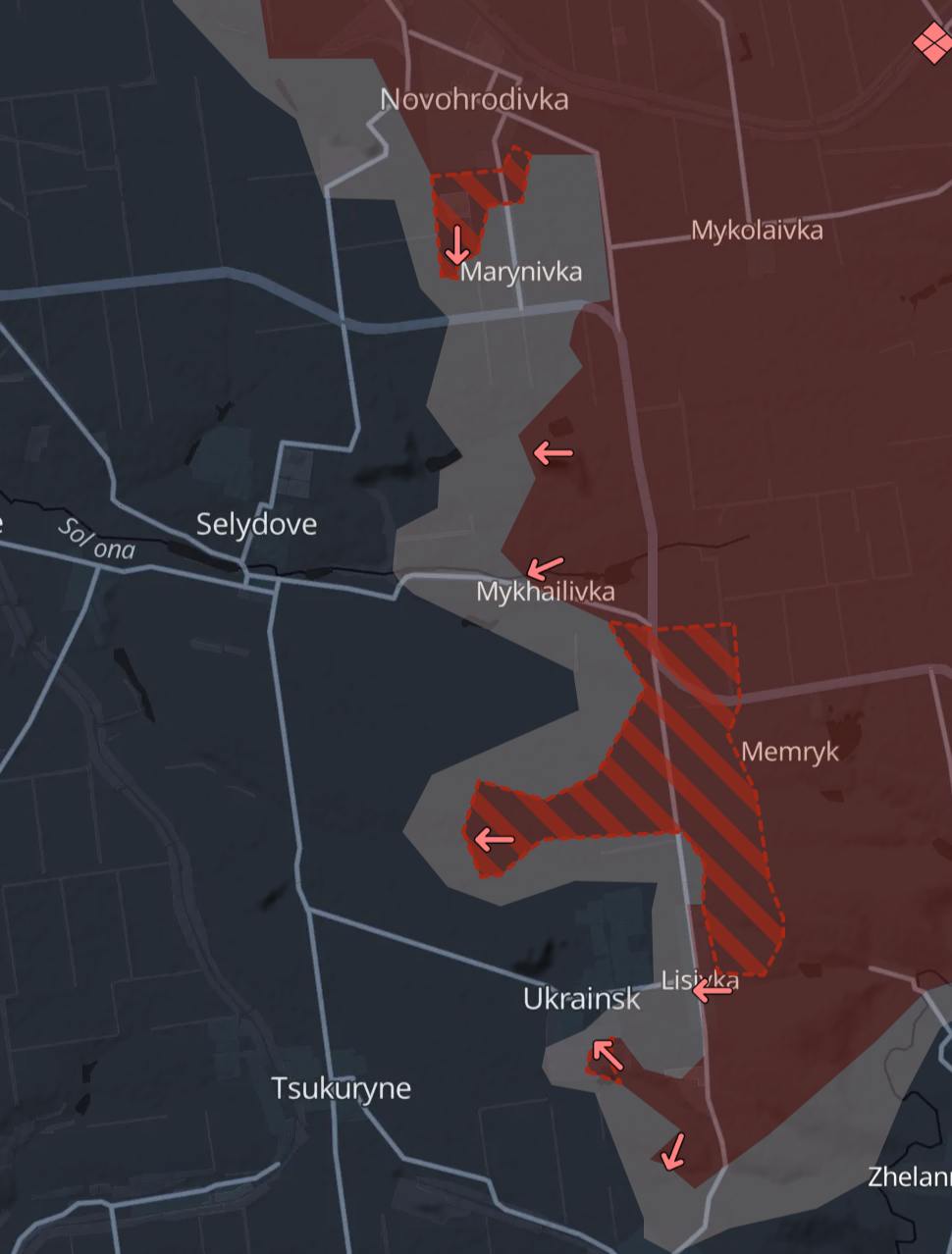 Також росіяни просунулися в самому Українську та в селі Маринівка на північ від Селидово.