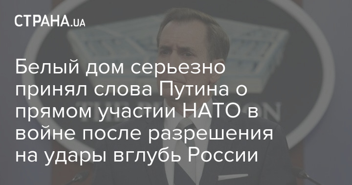 Білий дім серйозно сприйняв слова глави Кремля Володимира Путіна про те, що зняття обмежень на використання далекобійних озброєнь для ударів углиб території РФ означатиме пряме залучення НАТО до українського конфлікту.