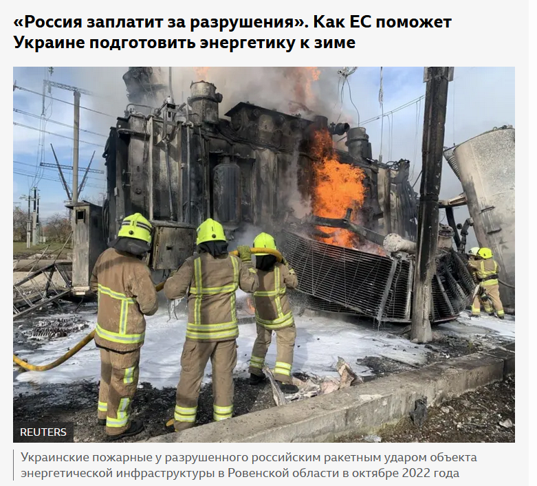 За час війни Євросоюз надав Україні понад 2 млрд євро допомоги на відновлення розбомблених електростанцій, трансформаторів та ліній електропередач.