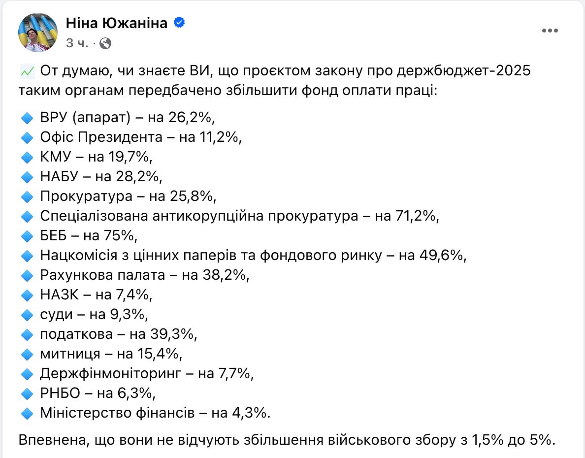 У законопроєкті про держбюджет-2025 пропонується збільшити фонд зарплат: