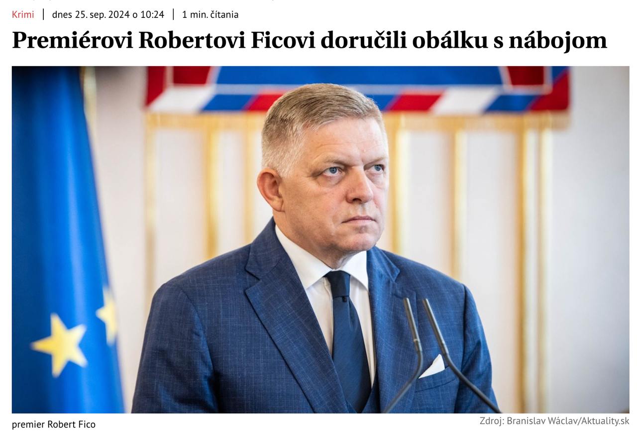 "Ми можемо підтвердити, що конверт із кулею, адресований прем'єр-міністру Словацької Республіки, був доставлений сьогодні до канцелярії уряду", - заявило відомство в коментарі Aktuality.