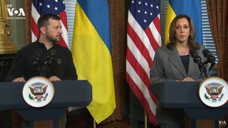 Камала Харріс та Володимир Зеленський виступили на спільному короткому інтерв'ю пресі.