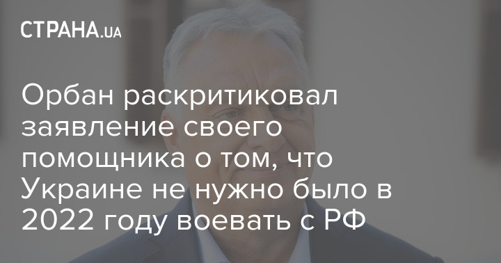 Помічник угорського прем'єра Віктора Орбана заявив, що Україні не потрібно було 2022 року воювати з Росією після початку повномасштабного вторгнення.