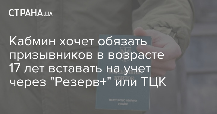 Кабінет міністрів вніс до Верховної Ради законопроект, яким хоче зобов'язати призовників віком 17 років вставати на облік через "Резерв+" або шляхом явки до ТЦК.