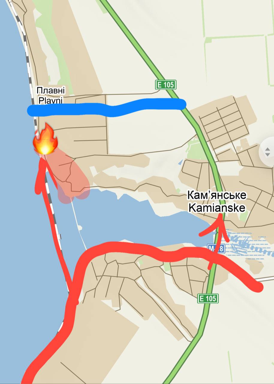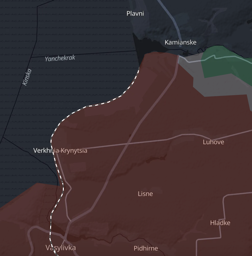 Також українські військові паблики сьогодні написали про атаку російських військ на Кам'янське Запорізької області – з боку захопленої Василівки. Вони повідомляють, що росіяни зайшли до Кам'янського, але були звідти вибиті. Російські паблики стверджують, що бої за Кам'янське продовжуються. Також вони пишуть, що була атака на Плавні, де також було просування.