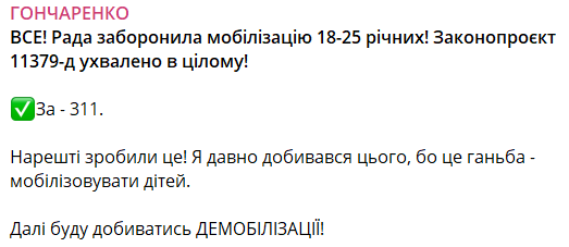 Нардеп зазначає, що демобілізацію цим документом не прописано.