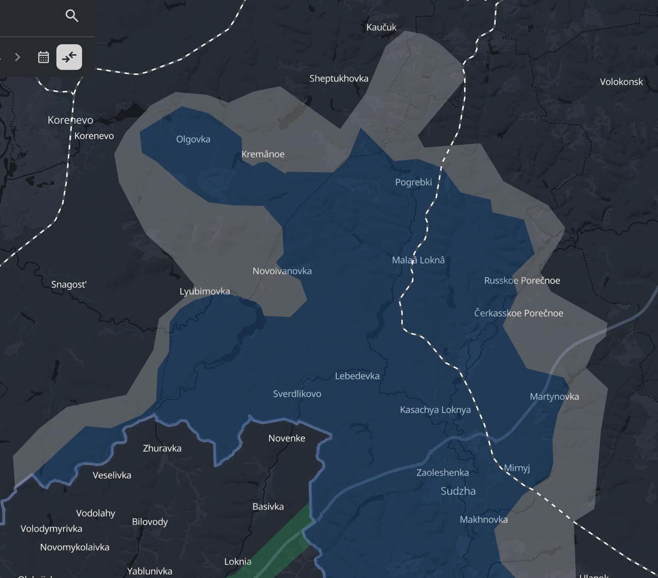 Українські військові пабліки маркують Любимівку як сіру зону (тобто там тривають бої), а Товстий Луг та Ольговку відносять до зони контролю ЗСУ.