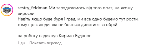 "Ми заряджаємося від того поля, на якому виросли. Навіть якщо буде буря та град, ми все одно будемо тут рости, бо є люди, які не бояться дивитися за обрій. На роботу надихнув Кирило Буданов", - сказано у публікації сестер Фельдман..