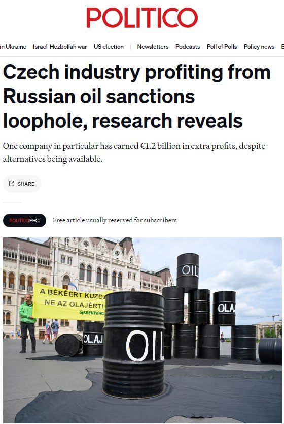 Така ситуація можлива, оскільки ЄС надав Чехії виняток зі свого нафтового ембарго. Причому залежність Чехії від російської нафти фактично зросла в 2023 приблизно до 60 відсотків, незважаючи на наміри уряду поступово відмовитися від закупівель у Москви.