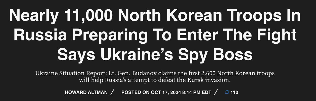 Раніше голова ГУР Буданов заявив, що буде підготовлено 11 тис. солдатів КНДР. НАТО поки що цього не підтверджує.