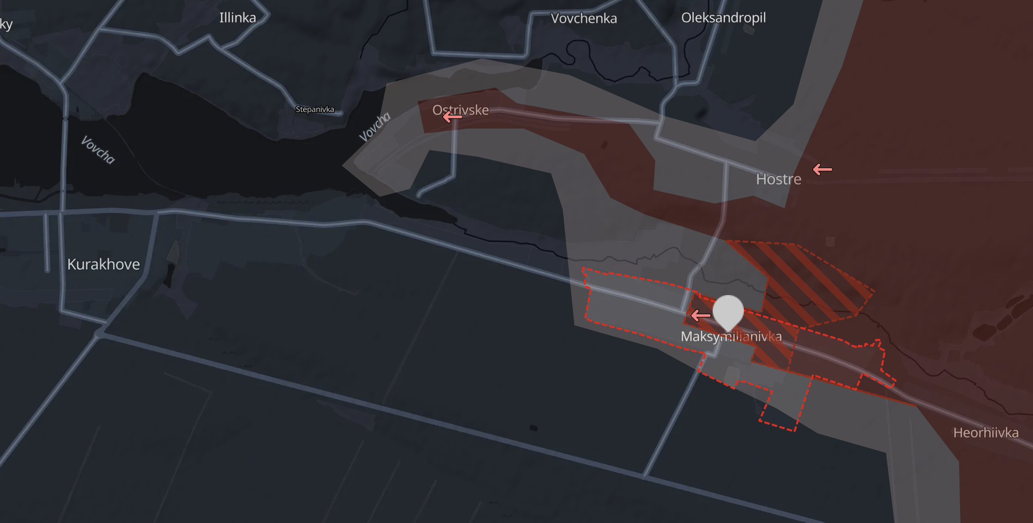 Також Deep State підтверджує просування російських військ на схід від Курахового захоплення більшості Максимільянівки. Росіяни стверджують, що село захоплене повністю.