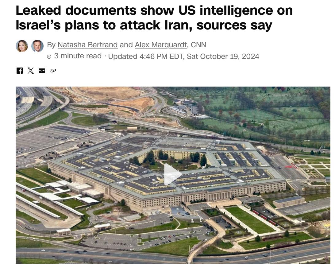 Документи складено американською "цифровою розвідкою" АНБ. Як вони потрапили в Мережу – неясно. Ізраїльські ЗМІ вже пишуть, що це міг бути навмисний витік з боку Білого дому, який виступає проти різких дій Ізраїлю проти Ірану.