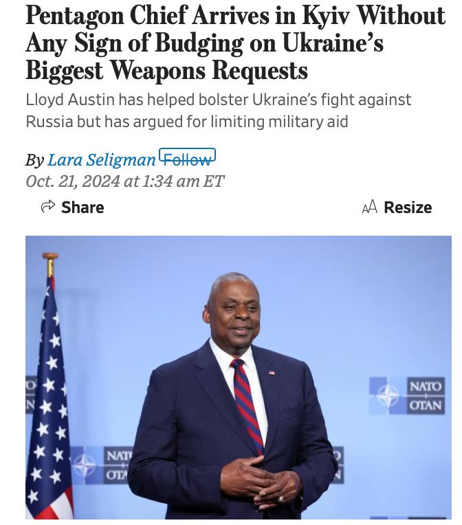 Видання The Wall Street Journal повідомляє, що він приїхав "з повідомленням про тверду відданість США військовим зусиллям України, але без нової військової допомоги чи дозволу на використання ракет великої дальності всередині Росії".