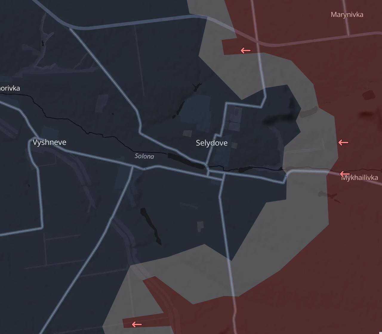 Військові паблики з обох сторін пишуть, що російські війська просуваються одноповерховою забудовою Селидово, тоді як основний укріпрайон ЗСУ в місті спирається на центральні квартали багатоповерхівок (з іншого боку, до повноцінного штурму багатоповерхівок у тому ж Вугледарі справа не дійшла, оскільки ВСУ залишили місто під загрозою оточення).