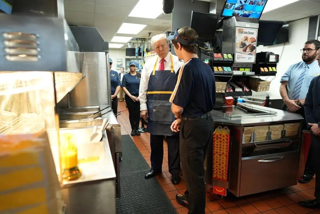 Також сьогодні ЗМІ показали, як Дональд Трамп "попрацював" у McDonald's. Кандидат у президенти насипав пачку картоплі та роздав автографи людям.