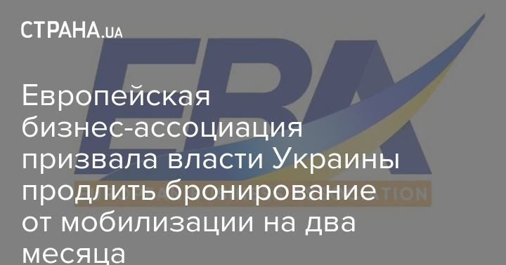 Європейська бізнес-асоціація закликала Кабінет Міністрів продовжити бронювання від мобілізації на два місяці.