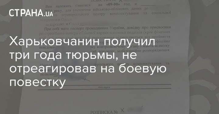 Харків'янин отримав три роки в'язниці, не відреагувавши на бойовий порядок денний