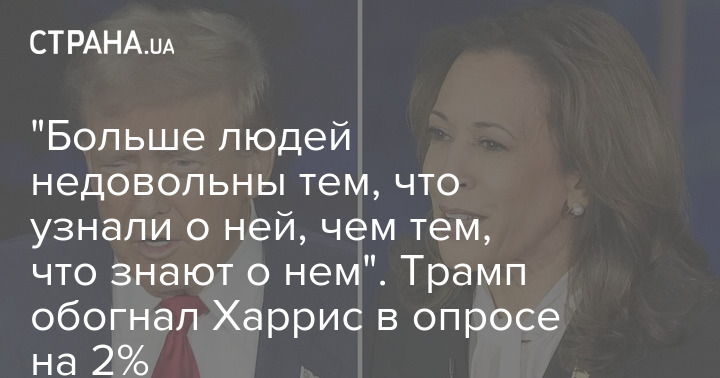 "Більше людей незадоволені тим, що дізналися про неї, ніж тим, що знають про нього". Трамп обігнав Харріс в опитуванні на 2%