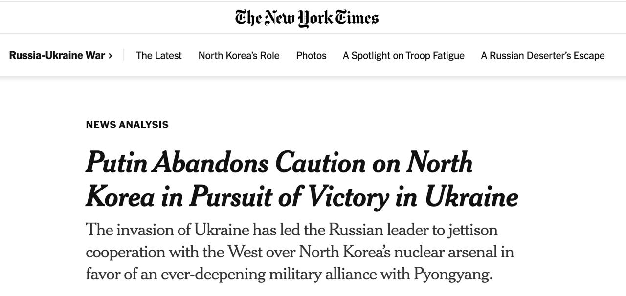 Росія відмовилася від обережності щодо КНДР задля перелому у війні з Україною - The New York Times