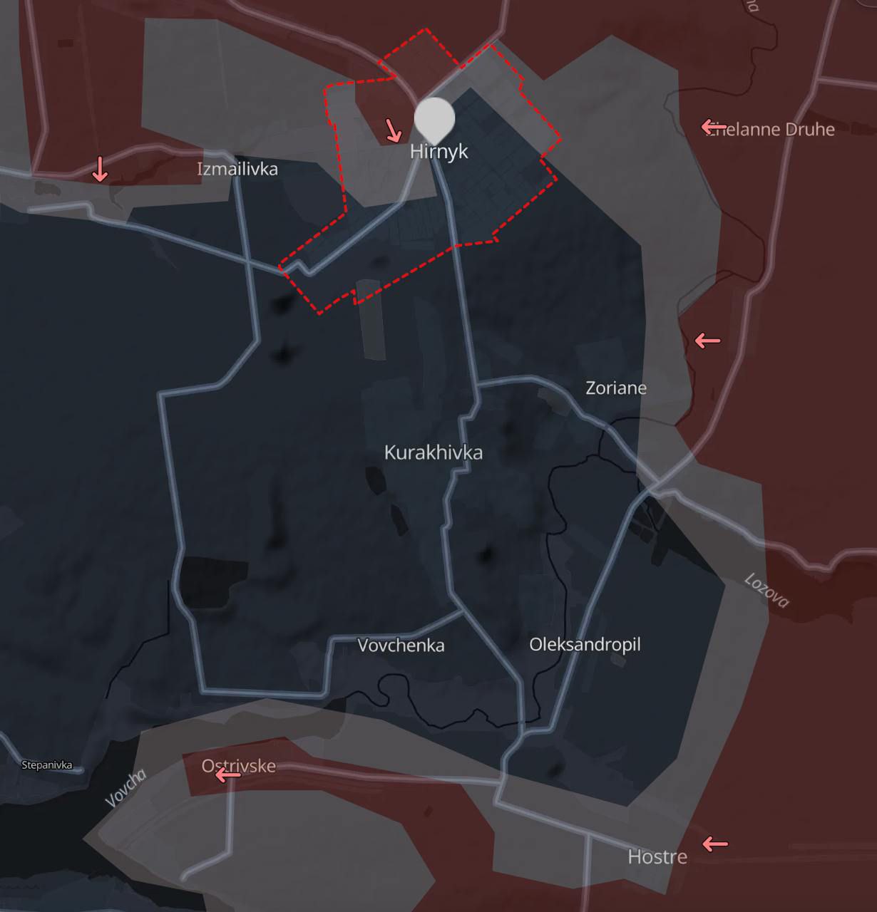 Карта українського військового паблику Deep State поки що не підтверджує втрати Гірника та Олександрополя. Зазначимо, що вони знаходяться на північ і південь від Курахівки, яку російські війська, мабуть, почнуть тепер штурмувати.