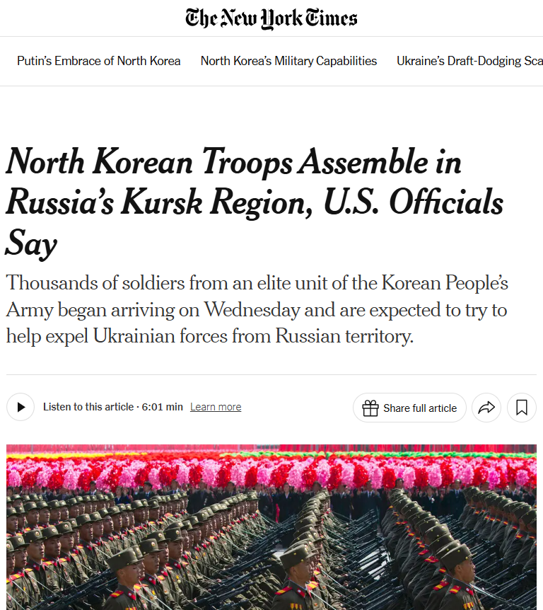 За словами урядовця, військові є частиною елітного підрозділу Корейської народної армії. Вони доставляються з Владивостока на борту транспортних літаків Іл-76 на військовий аеродром у європейській частині Росії, а потім вирушають до зони бойових дій.