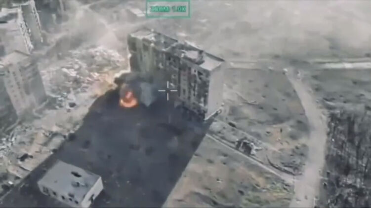 Знесення багатоповерхівки. Скріншот з відео ЗСУ