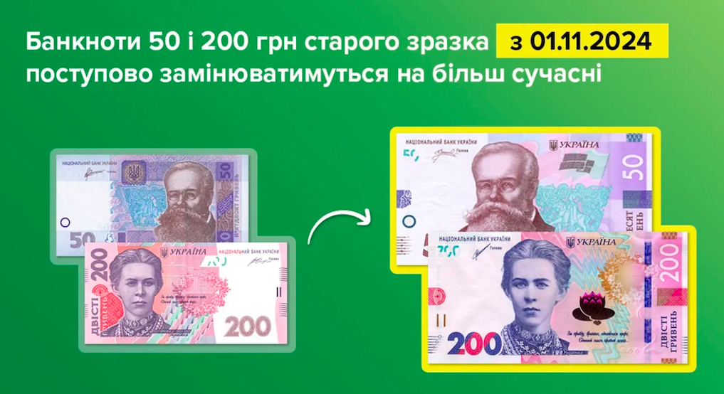 З листопада Нацбанк розпочне вилучення із обігу старих банкнот номіналом 50 та 200 гривень, які були випущені з 2003 по 2007 роки.