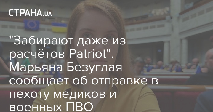"Забирають навіть із Patriot". Мар'яна Безугла повідомляє про відправлення до піхоти медиків та військових ППО