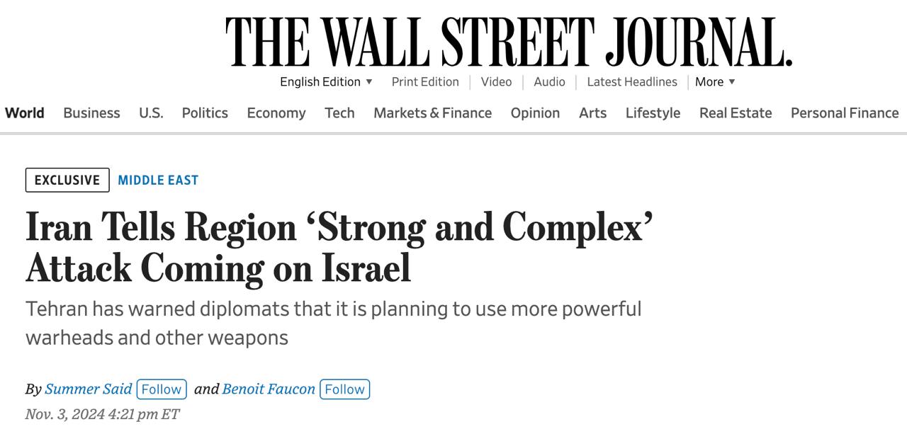 Днями інша американська газета The New York Times написала, що Іран спочатку не планував відповідати на удар Ізраїлю, але наслідки виявилися надто масштабними, щоб їх проігнорувати. Ізраїль уже заявив, що буде готовий завдати удару у відповідь.