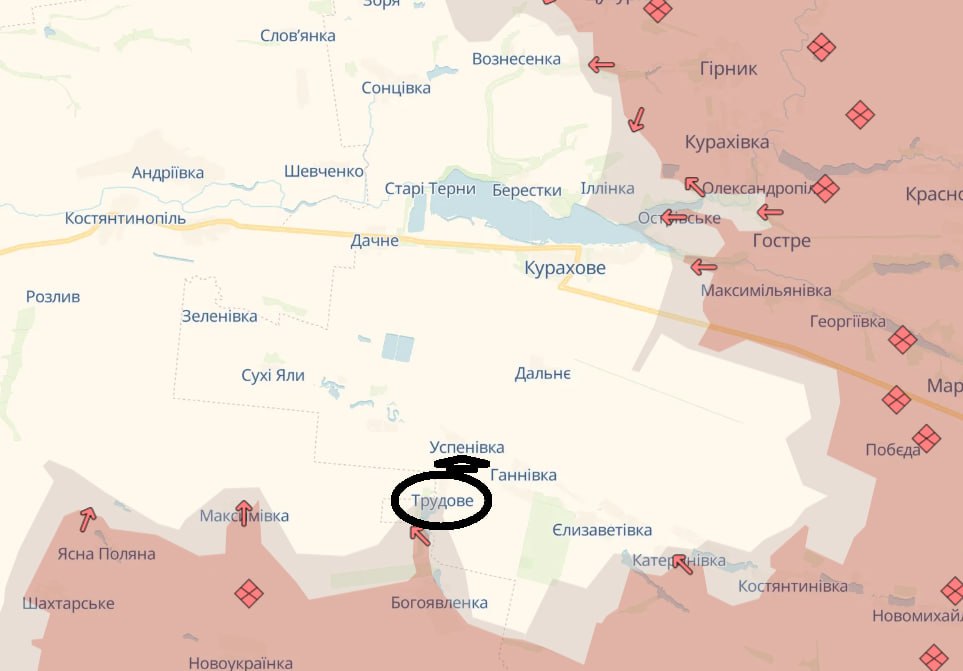 Росіяни захопили Трудове та розпочали атаку на Успенівку – населені пункти на південь від Курахового на Донеччині.