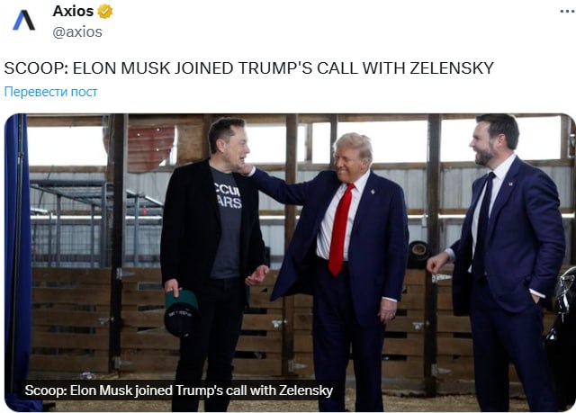 У тій же статті Axios говорилося про те, як пройшла розмова Зеленського з Трампом, у якому був присутній Ілон Маск.