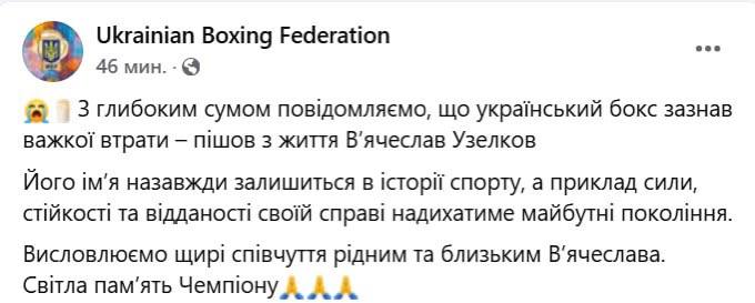 Сьогодні, 9 листопада, помер відомий український боксер В'ячеслав Узєлков. Йому було 45 років.