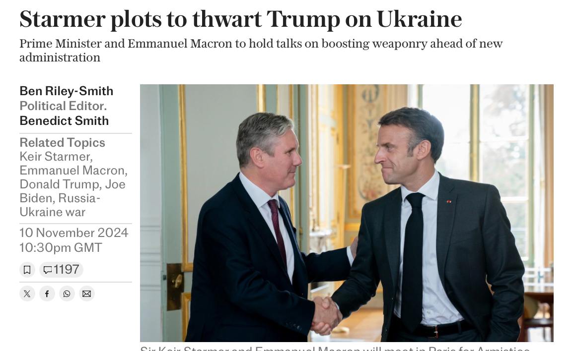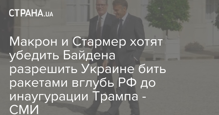 Прем'єр-міністр Великобританії Кір Стармер і президент Франції Емманюель Макрон спробують переконати Джо Байдена, що йде главу Білого дому, дати Україні дозвіл на стрілянину ракетами Storm Shadow вглиб Росії до інавгурації нового президента США Дональда Трампа.