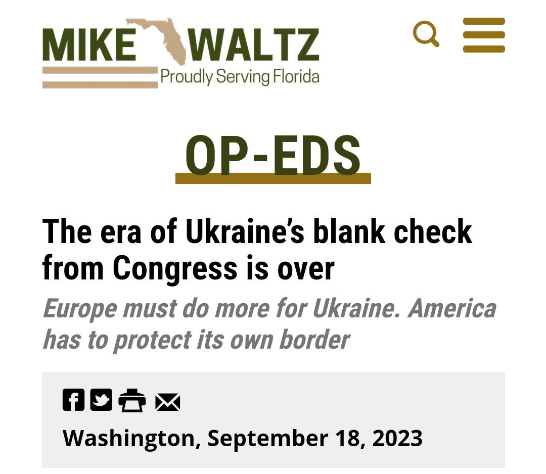 Майкл Уолтц – схожий випадок. Влітку 2022 року у складі групи конгресменів він відвідував Україну та закликав Байдена направити Києву більше військової допомоги. Але вже у вересні 2023 року виступив проти подальшого фінансування України, якщо США й надалі нестимуть основні витрати, поки такі європейські країни, як Німеччина, платять набагато менше.