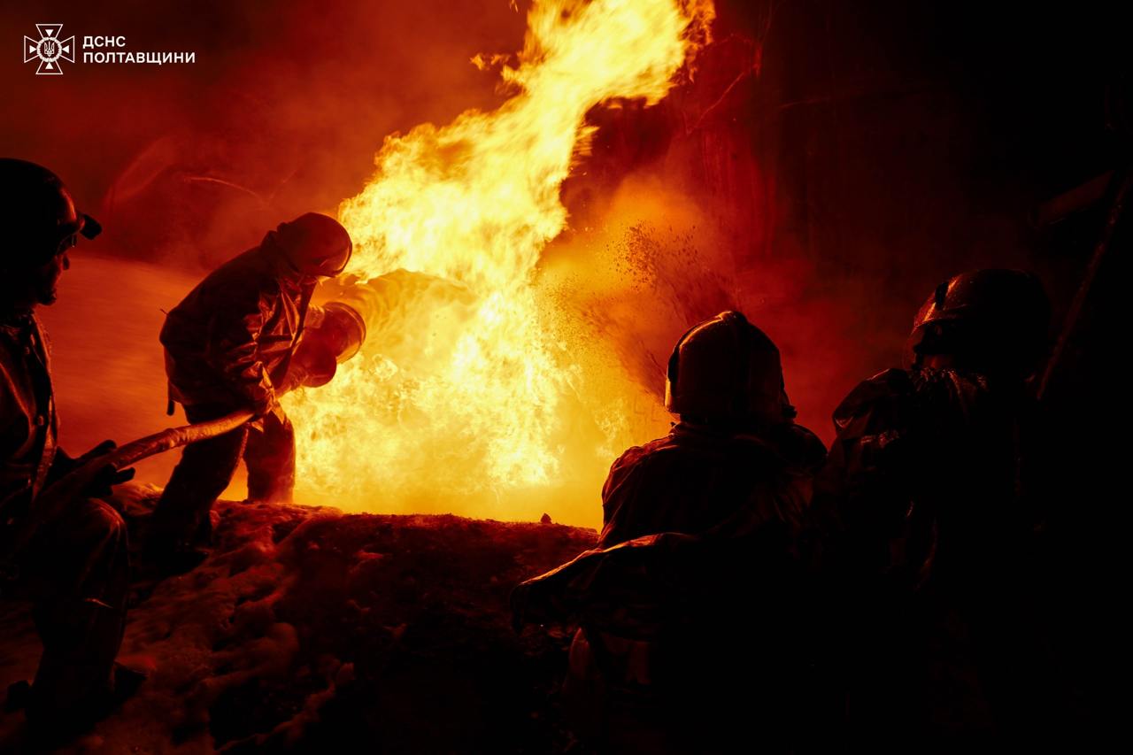 11:35 На Полтавщині сьогодні вночі була масштабна пожежа на промисловому об'єкті після прильоту "Шахеда", повідомляє ДСНС.