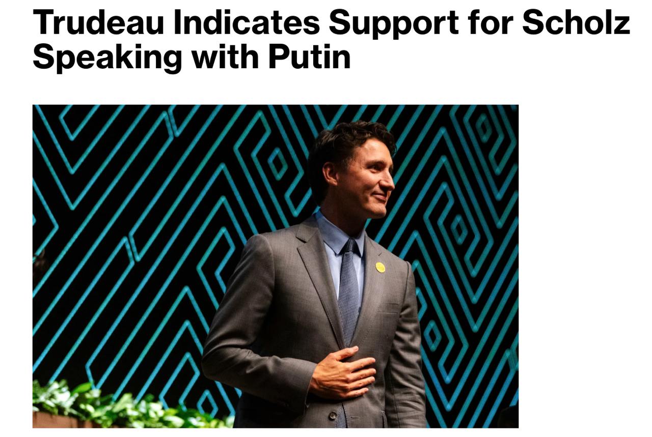 "Ми всі розуміємо, наскільки важливо покласти край насильству в Україні, покласти край конфліктам у всьому світі. Це вимагає певного рівня взаємодії з колегами, з якими ми у багатьох випадках не згодні", - заявив Трюдо, коментуючи розмову канцлера Німеччини з Путіним.