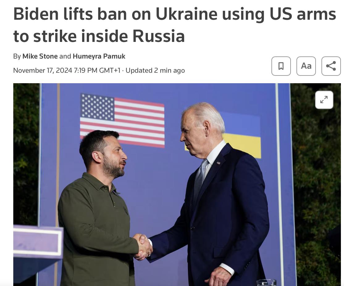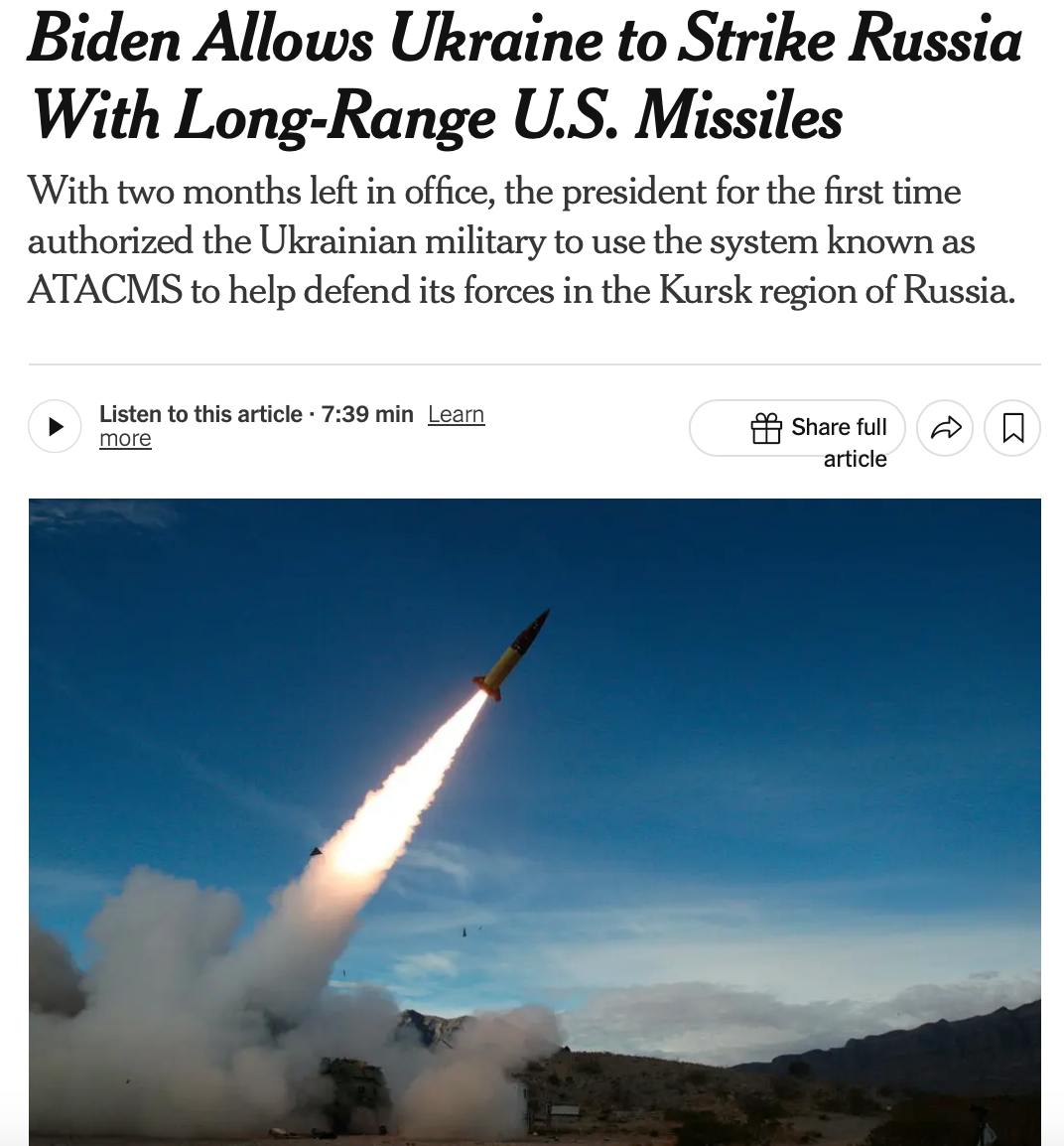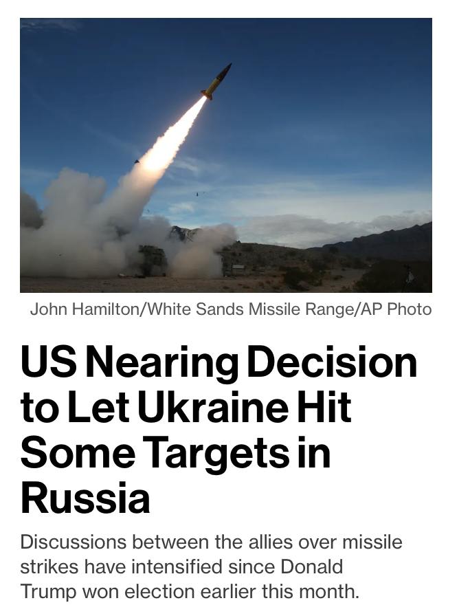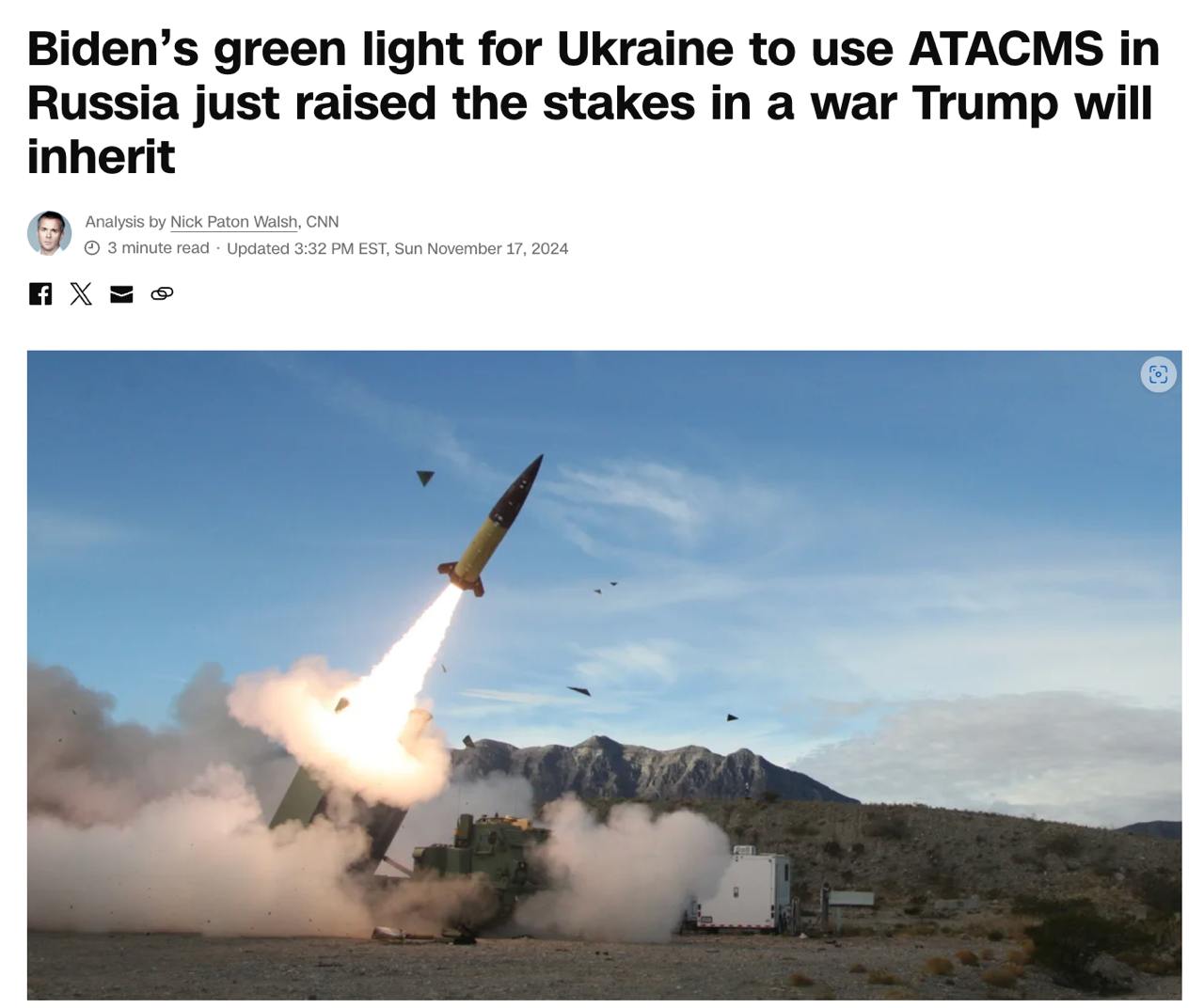 Як ми вже писали, дозвіл на удари далекобійними ракетами по РФ до вступу на посаду Трампа може бути ходом західної "партії війни", щоб максимально підвищити напруженість у відносинах Заходу та Росії і унеможливити будь-які потенційні домовленості про якнайшвидше завершення війни в Україні після приходу до влади у США нового президента.