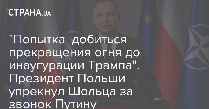 "Я вважаю, що дзвінок Шольця Путіну - це була спроба домогтися припинення вогню в Україні до того, як Дональд Трамп обійме посаду", - сказав Дуда.