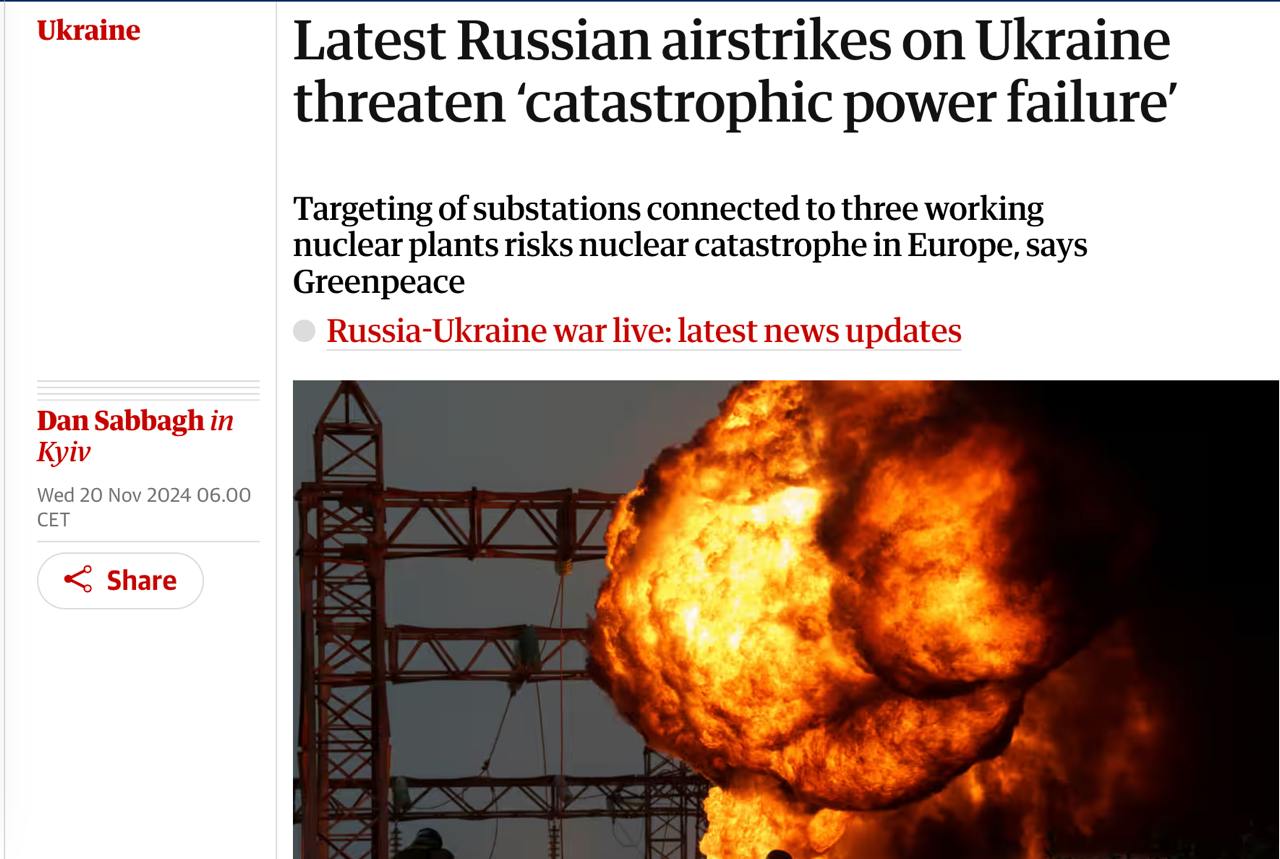 17 листопада Росія била по атомних підстанціях. Енергосистема України на межі катастрофи - "Грінпіс"