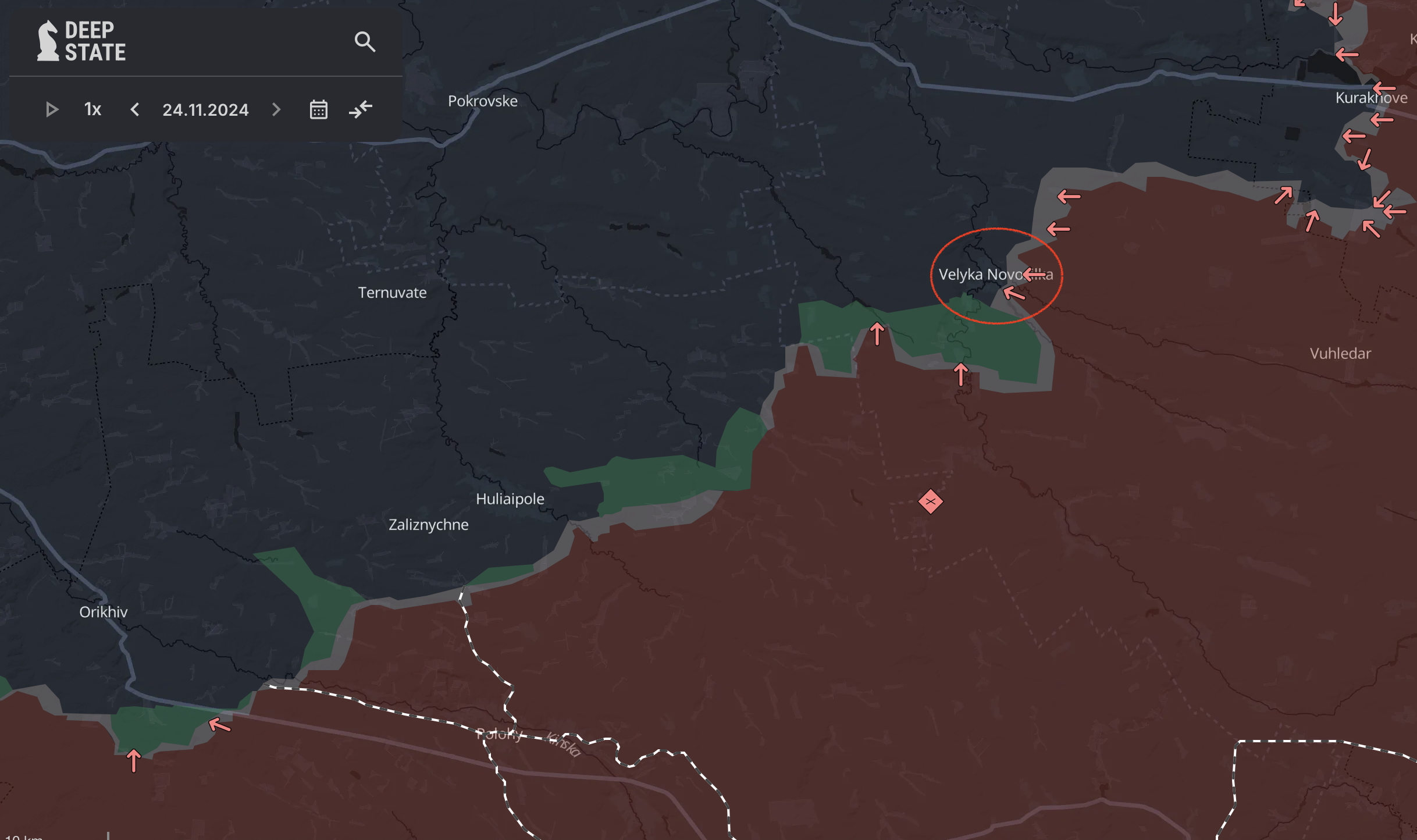 Російські паблики пишуть, що з прориву до міста став можливий через малу кількість військ ЗСУ в опорних пунктах, які обороняють Велику Новосілку.
