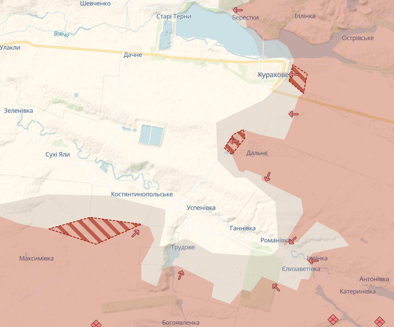 Армія РФ просунулась у східній частині Курахового та зайшла до центру міста, свідчить карта Deep State.
