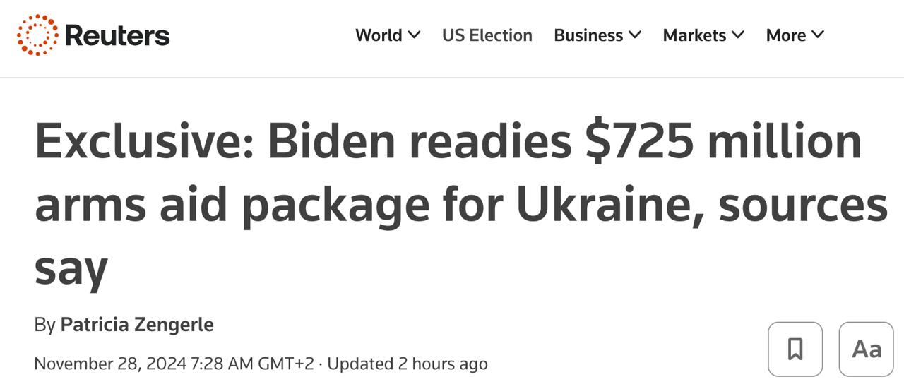 Адміністрація президента США Джо Байдена готує ще один пакет військової допомоги Україні на 725 млн. доларів.